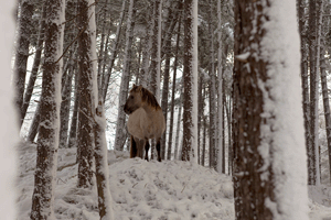 De winter heeft de duinen bedekt onder een deken van sneeuw. Het is stil, geen wind, in het westen hoor je het ruisen van de branding. PWN-boswachter Ruud Maaskant ging op pad in het Kraansvlak, waar naast de wisenten sindskort ook Koniks rondlopen. Gewapend met zijn fototoestel maakte hij de mooiste foto's.